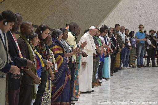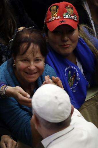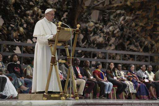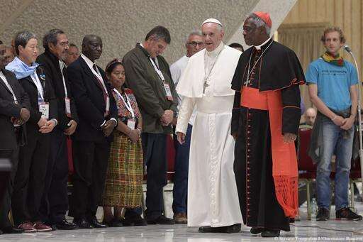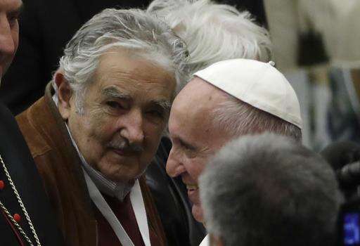 The pope spoke during a meeting at the Vatican with an international group that included environmentalists, labor union activists and indigenous rights activists. In the audience was the former president of Uruguay, Jose Mujica, a defender of the poor.