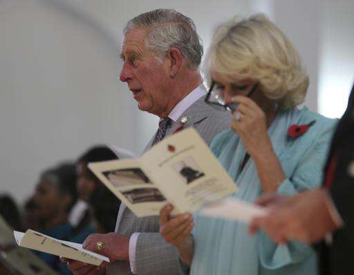 Britain's Prince Charles and his wife Camilla, Duchess of Cornwall attend a service of celebration at Bait Al Noor church in Muscat, Oman, Saturday, Nov. 5, 2016. The royal couple have started a three-nation royal tour of the Gulf in Oman. (AP Photo/Kamran Jebreili)