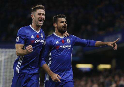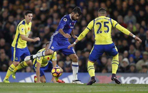 Only the post denied Victor Moses but Costa did grab Chelsea's third before halftime after Nemanja Matic was left unmarked to head a corner into the path of the striker.