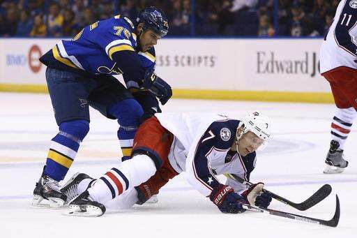 NOTES: Bouwmeester was honored before the game for playing in his 1,000 career NHL game on Tuesday at New York. ... Blues F Nail Yakupov was a healthy scratch for the first time this season. ... Columbus set a franchise record in goals in a 10-0 victory over Montreal on Friday. In contrast, the Blues scored nine total goals in their previous six games. ... Blues D Robert Bortuzzo (lower body) and Blue Jackets F David Clarkson (lower body) sat with injuries.