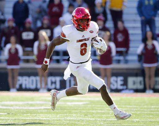 Louisville quarterback Lamar Jackson runs the ball during the second half of Louisville's 52-7 win over Boston College in an NCAA football game at Alumni Stadium in Boston, Saturday, Nov. 5, 2016. (AP Photo/Winslow Townson) The Associated Press