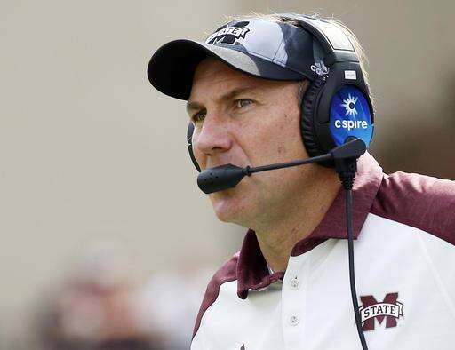 Mississippi State head coach Dan Mullen watches during an NCAA college football game against Texas A&M in Starkville, Miss., Saturday, Nov. 5, 2016. Mississippi State won 35-28. (AP Photo/Rogelio V. Solis) The Associated Press
