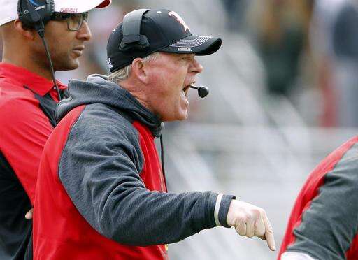 Louisville head coach Bobby Petrino shouts at his players during the first half of their 52-7 win over Boston Collegeg in an NCAA football game at Alumni Stadium in Boston, Mass. Saturday, Nov. 5, 2016. (AP Photo/Winslow Townson) The Associated Press