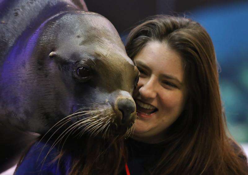A pair of sea lions named Kim and Rose greeted guests with hugs yesterday before entertaining with their show "Sea Lion Splash" at the fourth annual Aquatic Experience at the Schaumburg Convention Center. More than 6,000 marine animal lovers were expected to attend the three-day event presented by the World Pet Association. Full story.