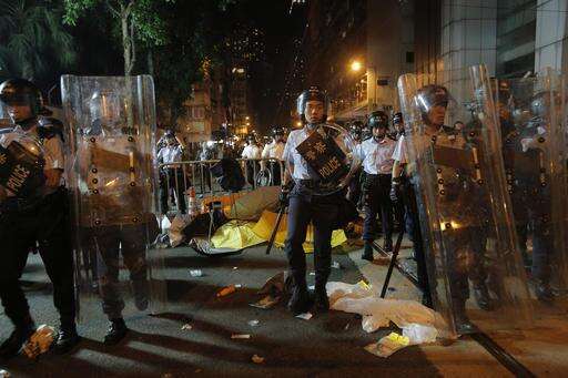 Police used pepper spray and batons against some demonstrators trying to reach Beijing's liaison office after the rally ended. Four people were arrested while two officers were injured, police said.