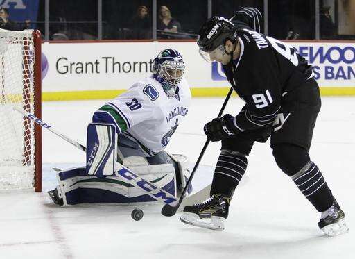 Vancouver Canucks goalie Ryan Miller (30) stops a shot on the goal by New York Islanders' John Tavares (91) during the second period of an NHL hockey game Monday, Nov. 7, 2016, in New York. (AP Photo/Frank Franklin II) The Associated Press