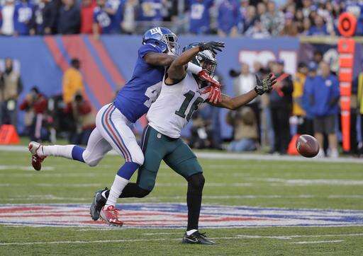 NOTES: McAdoo benched first-round draft pick Eli Apple for poor play Sunday. "We're going to dust Eli off, put him back out there," McAdoo said of the cornerback. "He's going to get better and learn from it." ... McAdoo said the Giants were planning to ask the league about an interception by the Eagles Nolan Carroll in the fourth quarter. McAdoo felt Beckham had the ball going to the ground. .... Backup QB Ryan Nassib is going to be limited this week with an elbow injury, McAdoo said.