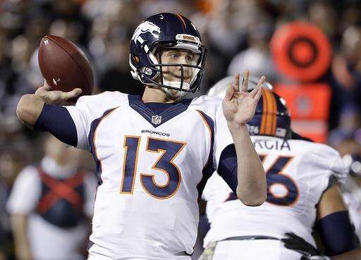 Trevor Siemian looked shaky at times for Denver but did throw two touchdown passes, including a short pass behind the line that Kapri Bibbs turned into a 69-yard touchdown catch and run in the fourth quarter.