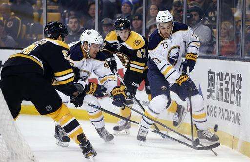 NOTES: Julien smiled and said of his milestone victory: "Another number, I move on from those. Like I always say, it's something I can cherish down the road. Right now I've just got to keep plugging away." . Buffalo LW Tyler Ennis and Kulikov both missed the pre-game practice and were game-time decisions, but played. ... Bruins RW Jimmy Hayes was a healthy scratch for the second straight game. ... Former Boston University star and Hobey Baker award winner Jack Eichel hasn't played this season for the Sabres, missing his 12th game with a high ankle sprain.