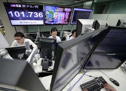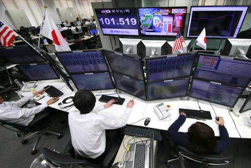 Money traders watch computer screens at a foreign exchange brokerage in Tokyo, Wednesday, Nov. 9, 2016. Asian shares have shed early gains, tumbling Wednesday as Donald Trump gained the lead in the electoral vote count in the presidential election. Dow and S&P futures also plunged. Earlier, investors had appeared persuaded that Hillary Clinton, seen as a more stable choice, would prevail. (AP Photo/Shizuo Kambayashi)