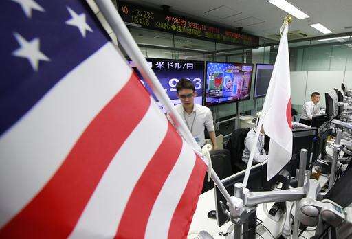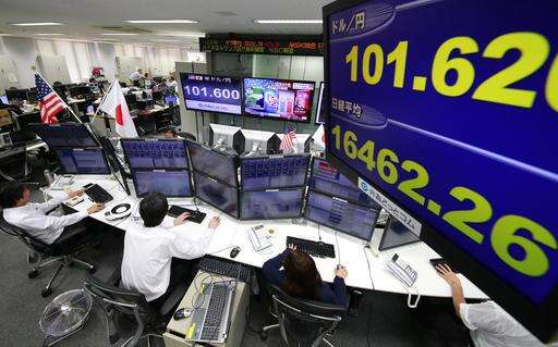 Money traders watch computer screens with the day's exchange rate between yen and the U.S. dollar at a foreign exchange brokerage in Tokyo, Wednesday, Nov. 9, 2016. Asian shares have shed early gains, tumbling Wednesday as Donald Trump gained the lead in the electoral vote count in the presidential election. Dow and S&P futures also plunged. Earlier, investors had appeared persuaded that Hillary Clinton, seen as a more stable choice, would prevail.(AP Photo/Shizuo Kambayashi)