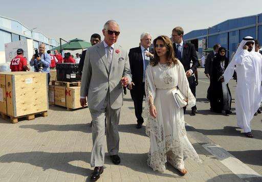 Britain's Prince Charles talks with Princess Haya of Jordan during his visit to the International Humanitarian City in Dubai, United Arab Emirates, Tuesday, Nov. 8, 2016. (AP Photo/Kamran Jebreili)