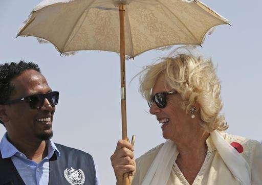 Camilla, the Duchess of Cornwall shares a laugh with a representative from the World Health Organization during her visit of the International Humanitarian City in Dubai, United Arab Emirates, Tuesday, Nov. 8, 2016. Prince Charles and Camilla will travel to Bahrain on Tuesday, the last leg of their weeklong three-nation tour of the Gulf after earlier visiting Oman. (AP Photo/Kamran Jebreili)