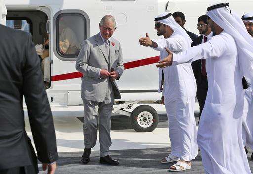 Britain's Prince Charles arrives for a visit to the International Humanitarian City in Dubai, United Arab Emirates, Tuesday, Nov. 8, 2016. (AP Photo/Kamran Jebreili)