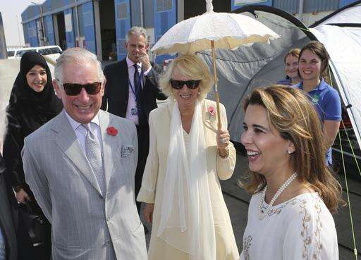 Britain's Prince Charles and his wife, Camilla, The Duchess of Cornwall and Princess Haya of Jordan, right, visit the International Humanitarian City in Dubai, United Arab Emirates, Tuesday, Nov. 8, 2016. (AP Photo/Kamran Jebreili)