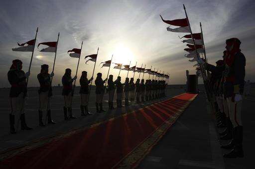 A Bahraini honor guard awaits the arrival of Britain's Prince Charles and his wife Camilla in Manama, Bahrain, on Tuesday, Nov. 8, 2016. The royal couple are on a three-nation tour of the Gulf. (AP Photo/Jon Gambrell)
