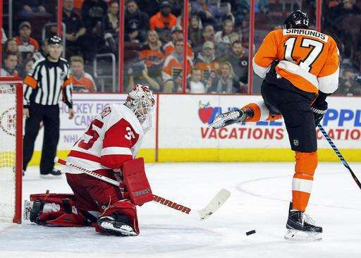 Notes: Red Wings D Tyler Bertuzzi made his NHL debut in place of Thomas Vanek, who missed his seventh game with a lower body injury. Vanek is on longterm IR and is out until at least Nov. 20. Bertuzzi is the nephew of former NHL player Todd Bertuzzi. ... Flyers F Wayne Simmonds got a knockout of Jonathan Ericsson with a left hook during a second-period fight. ... The teams wrap their three-game season series on Dec. 11 in Detroit. ... Konecny delivered big second-period hits to Justin Abdelkader and Steve Ott.