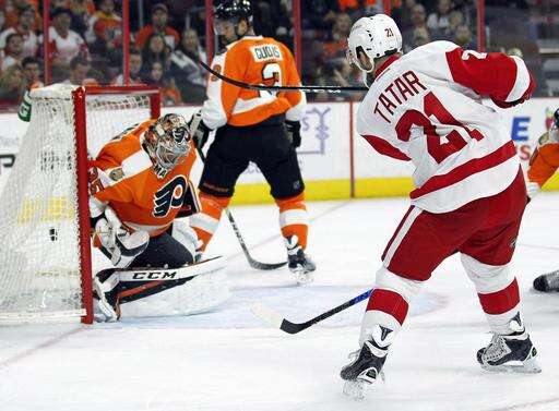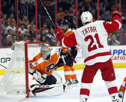 The Red Wings answered just over two minutes later when Tatar netted his second goal of the season after a Flyers miscue. Philadelphia's Brandon Manning attempted to clear the puck from next to his own goal but it was blocked by Henrik Zetterberg, who set up Tatar from behind the net for the point-blank shot.