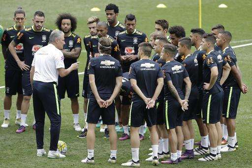 Brazil's coach Tite talks with his players during a training session in Belo Horizonte, Brazil, Monday, Nov. 7, 2016. Brazil will face Argentina in a 2018 World Cup qualifying soccer match on Thursday. (AP Photo/Andre Penner) The Associated Press