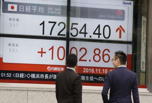 HONG KONG (AP) - Asian shares rallied Thursday, extending a surprising global recovery as Donald Trump's conciliatory acceptance speech comments helped soothe world financial markets spooked by his unexpected U.S. election victory.