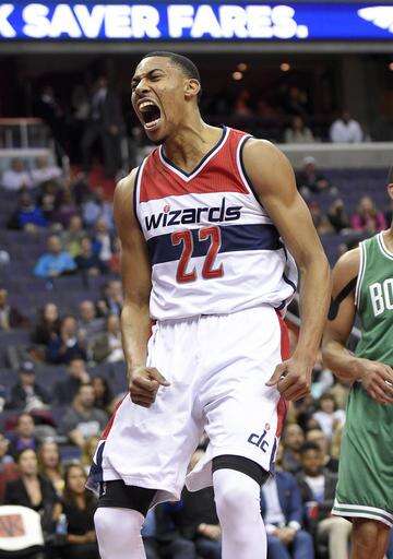 Washington Wizards forward Otto Porter Jr. reacts after dunking during the first half of an NBA basketball game against the Boston Celtics, Wednesday, Nov. 9, 2016, in Washington. (AP Photo/Nick Wass) The Associated Press