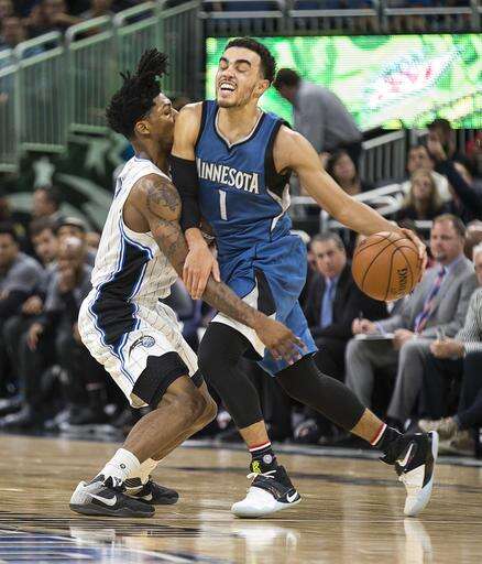 Minnesota Timberwolves guard Tyus Jones (1) runs into Orlando Magic guard Elfrid Payton during the first half of an NBA basketball game in Orlando, Fla., Wednesday, Nov. 9, 2016. (AP Photo/Willie J. Allen Jr.) The Associated Press