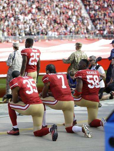 Golden State has discussed 49ers quarterback Colin Kaepernick's national anthem protest . Kaepernick said Tuesday he didn't vote for president after he criticized both candidates in late August and called Trump "openly racist."