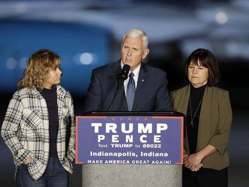 Vice President-elect Mike Pence speaks as he wife, Karen, and daughter, Charlotte, stand next to him during a public rally Thursday, Nov. 10, 2016, in Indianapolis. (AP Photo/Darron Cummings) The Associated Press