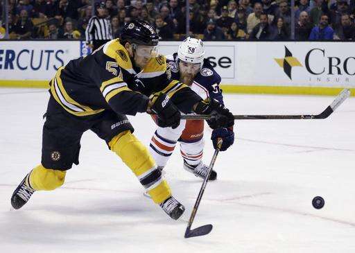 NOTES: Beleskey snapped a 16-game scoreless streak with his first of the season. ... Bruins F Jimmy Hayes thought he had his 27-game goal drought snapped when he was originally credited for the Bruins' fourth goal. ... Columbus has killed 30 of 32 Boston power plays including 26 straight over 11 games. ... Boston announced RW Noel Acciari will miss 3 to 4 weeks with a lower body injury.