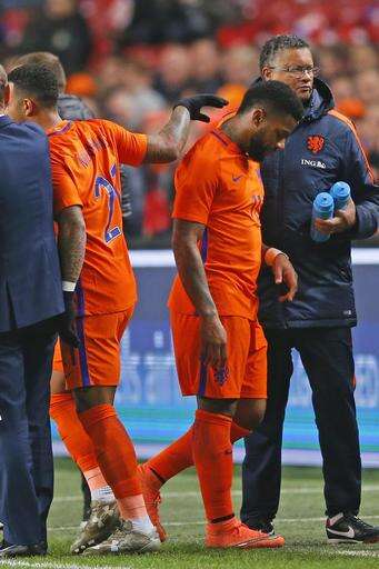 Netherlands' Jeremain Lens leaves the pitch with an injury during the international friendly soccer match between Netherlands and Belgium at ArenA stadium in Amsterdam, Netherlands, Wednesday, Nov. 9, 2016. (AP Photo/Peter Dejong) The Associated Press