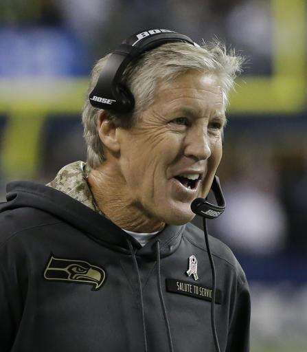 Seattle Seahawks head coach Pete Carroll smiles as he looks on from the sidelines against the Buffalo Bills in the first half of an NFL football game, Monday, Nov. 7, 2016, in Seattle. (AP Photo/Elaine Thompson) The Associated Press
