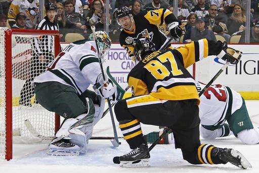The Wild, playing their first game since a one-goal loss against Colorado on Saturday, started slow as a giveaway led to a chance for Crosby alone in front of Dubnyk, while Evgeni Malkin later hit the post during a 2-on-1 with Kessel.