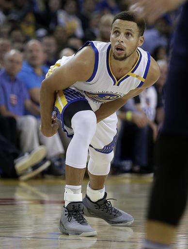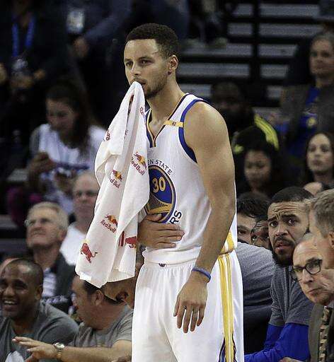 Golden State Warriors' Stephen Curry watches from the bench during the first half of the team's NBA basketball game against the Dallas Mavericks on Wednesday, Nov. 9, 2016, in Oakland, Calif. (AP Photo/Ben Margot) The Associated Press