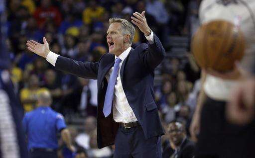 Golden State Warriors coach Steve Kerr reacts during the second half of the team's NBA basketball game against the Dallas Mavericks on Wednesday, Nov. 9, 2016, in Oakland, Calif. (AP Photo/Ben Margot) The Associated Press