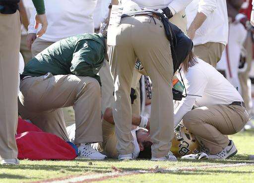 Russell was carted off with 5:48 remaining in the third quarter, with Baylor trailing 35-10. Players from both teams went over to comfort him, and the crowd cheered for him as he was driven off the field in a cart.