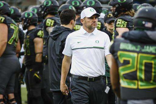 Oregon head coach Mark Helfrich watches his players before an NCAA college football game against Stanford, Saturday, Nov. 12, 2016, in Eugene, Ore. (AP Photo/Thomas Boyd) The Associated Press