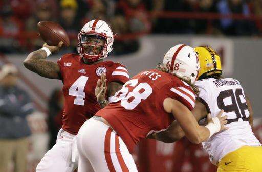 Nebraska quarterback Tommy Armstrong Jr. (4) throws as offensive lineman Nick Gates (68) blocks Minnesota defensive lineman Steven Richardson (96) during the first half of an NCAA college football game in Lincoln, Neb., Saturday, Nov. 12, 2016. (AP Photo/Nati Harnik)