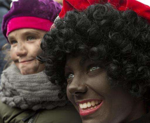 A Black Pete interacts with children during the arrival of Sinterklaas, or Saint Nicholas, in Maassluis, Netherlands, Saturday, Nov. 12, 2016. Sinterklaas and his helper Black Pete are at the center of a long-time controversy because Pete is often played by white people in blackface makeup. (AP Photo/Peter Dejong) The Associated Press