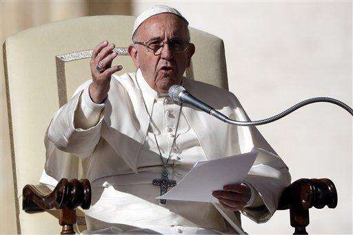 Pope Francis delivers his message during a Jubilee audience in St. Peter's Square, at the Vatican, Saturday, Nov. 12, 2016. (AP Photo/Gregorio Borgia)
