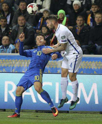 Artyom Kravets, his head heavily bandaged following a collision, scored the winning goal in the 24th, shedding his marker and sneaking in at the far post to meet Yevhen Konoplyanka's cross from the left flank.