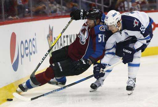 NOTES: Former Avalanche star and Hockey Hall of Famer Peter Forsberg was in attendance. ... Colorado RW Blake Comeau missed his third straight game with a groin injury. ... Winnipeg C Mathieu Perreault missed his fifth straight game with an upper-body injury. ... Avalanche RW Jarome Iginla played in his 1,487th career game to tie Wayne Gretzky for 18th all time.