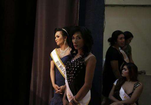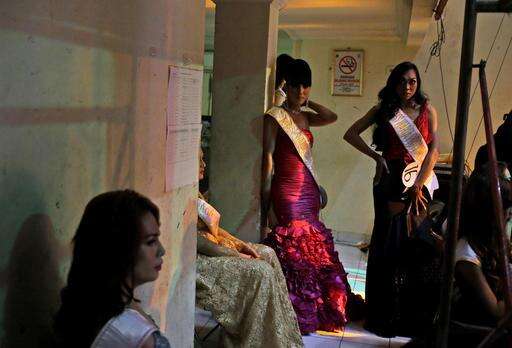 In this Friday, Nov. 11, 2016, photo, contestants wait backstage during Miss Transgender Indonesia pageant in Jakarta, Indonesia. Opposition from Islamic hardliner groups prevented the long-running event twice in recent years as Indonesia's police often look the other way when they attack or intimidate LGBT groups. (AP Photo/Dita Alangkara)