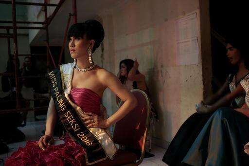In this Friday, Nov. 11, 2016, photo, a contestant waits backstage during the Miss Transgender Indonesia pageant in Jakarta, Indonesia. Indonesia, the world's most populous Muslim nation, is often held up as practicing a moderate form of Islam. But that reputation for tolerance has been undermined in the past year as the media and religious and political leaders stoked prejudice against lesbian, gay, bisexual and transgender people, framing them as a threat to the nation. (AP Photo/Dita Alangkara)