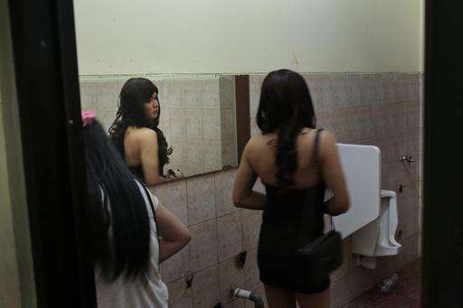 In this Friday, Nov. 11, 2016, photo, dancers wait for their time to perform at the make up room during the Miss Transgender Indonesia pageant in Jakarta, Indonesia. Indonesia, the world's most populous Muslim nation, is often held up as practicing a moderate form of Islam but that reputation for tolerance has been undermined in the past year as the media and religious and political leaders stoked prejudice against lesbian, gay, bisexual and transgender people, framing them as a threat to the nation. (AP Photo/Dita Alangkara)