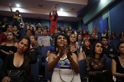 In this Friday, Nov. 11, 2016 photo, spectators cheer for the contestants during the Miss Transgender Indonesia pageant in Jakarta, Indonesia. Transgender people and gay activists from across Indonesia have defied a wave of hatred against sexual minorities to crown a Miss Transgender at the national pageant held in absolute secrecy. (AP Photo/Dita Alangkara)