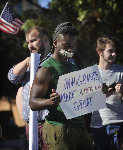 Several hundred people, mainly high school and college students, rallied at the federal building in downtown San Diego to protest Trump's election. Some held signs or banners saying "we are not criminals" and "make racists afraid again." An 18-year-old was arrested after he allegedly punched a police officer, police said.