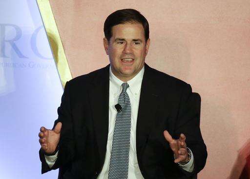 Arizona Gov. Doug Ducey makes a statement during a plenary session at the Republican Governors Association annual conference, Tuesday, Nov. 15, 2016, in Orlando, Fla. (AP Photo/John Raoux)