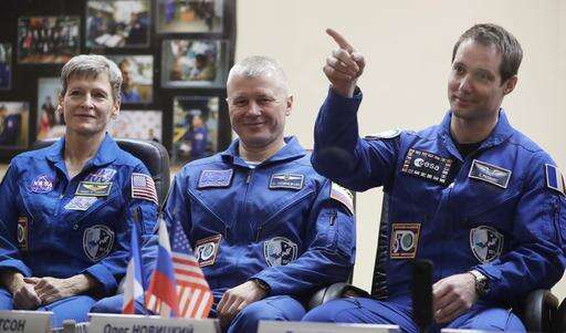 This will be the third space station mission for Whitson, an Iowa-born biochemist, and her second stint as commander. She'll launch from Kazakhstan with two younger men, Russian and French. They'll join an American and two Russians at the space station.