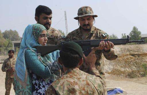 KHAIRPUR TAMIWALI, Pakistan (AP) - Pakistan put its military might on display Wednesday with the country's prime minister and the army chief traveling to a strategic area close to the border with archrival India to observe a military drill.