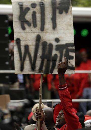 "They still benefit out of a crime, a crime against humanity," Mbuyiseni Ndlozi, a spokesman for the opposition group, said of the white minority. He said it was wrong to forgive whites after apartheid but "still keep them in a position of dominance."